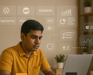 Participate in outcome-based, hands-on projects with top German startups and businesses, right from your home in India. Projects span diverse domains like engineering, IT, design, marketing, and more.